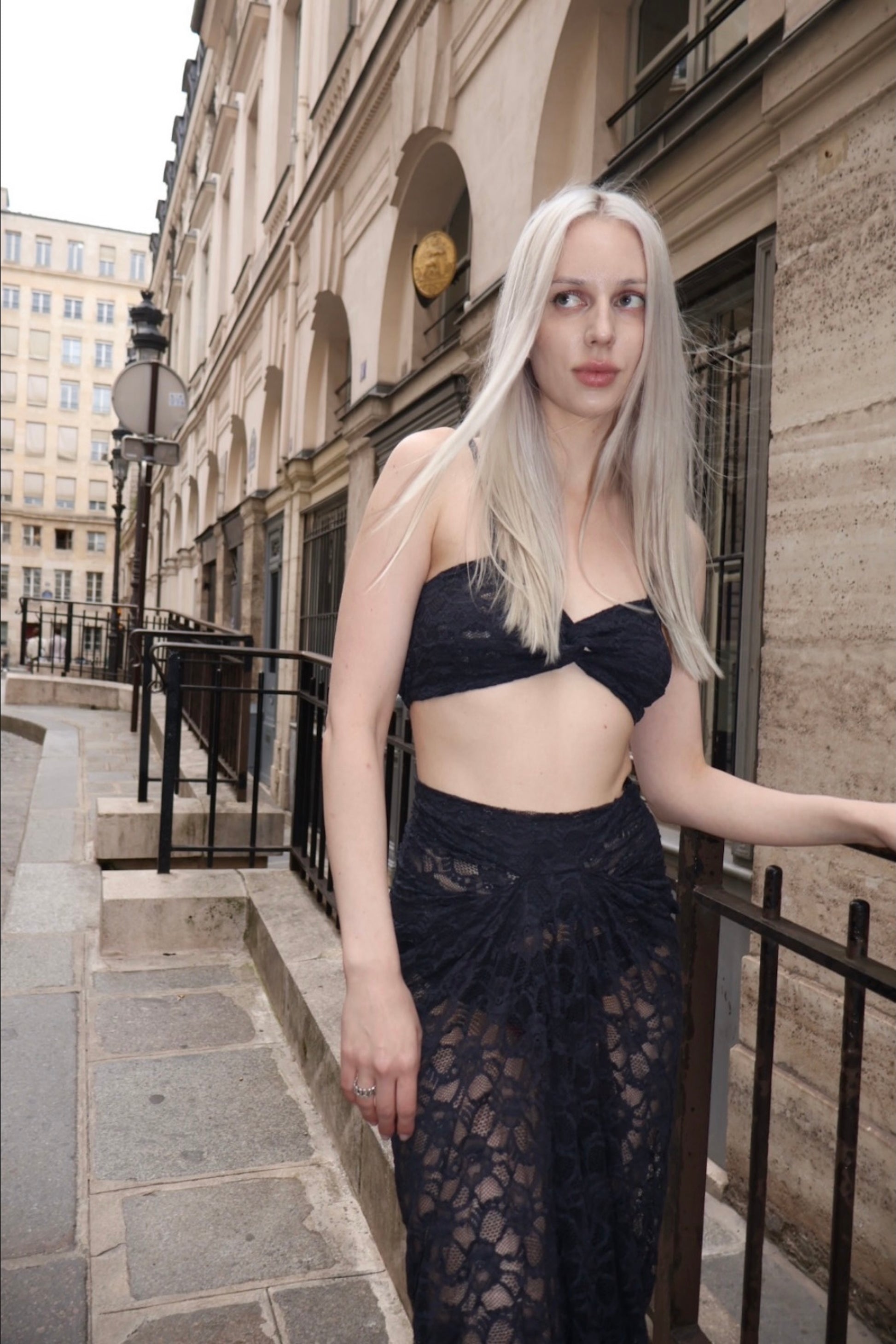 The Fayelina Skirt is crafted from our signature sheer floral stretch lace, designed to contour and flatter with a ruched waist detail. Perfect for layering or pairing with the matching top, it’s an effortlessly chic essential.
